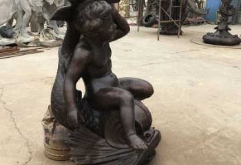 戶外景區(qū)銅雕玩水的兒童雕塑