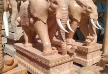 酒店門口大象招財晚霞紅石雕大象雕塑