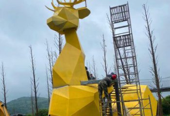 大型不銹鋼鏡面抽象梅花鹿雕塑