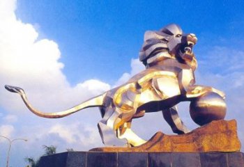銅雕塑獅子,色澤獨特,栩栩如生。獅子象征著勇猛、力量。