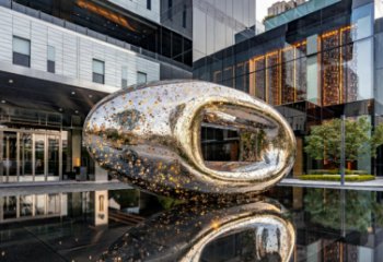 雙葫納福?祥云映壽 這件不銹鋼景觀雕塑以 “雙葫納福” 為核心意象,將傳統(tǒng)吉祥符號(hào)與現(xiàn)代材質(zhì)語(yǔ)言有機(jī)融合。主體為大小兩只葫蘆,取 “福祿雙全、福壽綿長(zhǎng)” 的諧音寓意,呼應(yīng)中國(guó)傳統(tǒng)文化中對(duì)圓滿與安康的精神追求。雕塑采用鏡面不銹鋼鍛造而成,金屬質(zhì)感在自然光下呈現(xiàn)出冷峻而靈動(dòng)的視覺張力,既契合現(xiàn)代公共空間的審美語(yǔ)境,又通過流暢的曲線造型,還原了葫蘆圓潤(rùn)飽滿的自然形態(tài)。葫蘆表面以紅色浮雕工藝,分別鐫刻 “?!?字團(tuán)紋與百壽篆字,在銀白底色的映襯下格外醒目,強(qiáng)化了福壽主題的表達(dá)。作為一件景觀雕塑,它不僅是公共空間的視覺焦點(diǎn),更通過符號(hào)化的設(shè)計(jì)語(yǔ)言,將傳統(tǒng)福文化轉(zhuǎn)化為當(dāng)代審美體驗(yàn),讓觀者在日常場(chǎng)景中感知到文化傳承與精神慰藉。